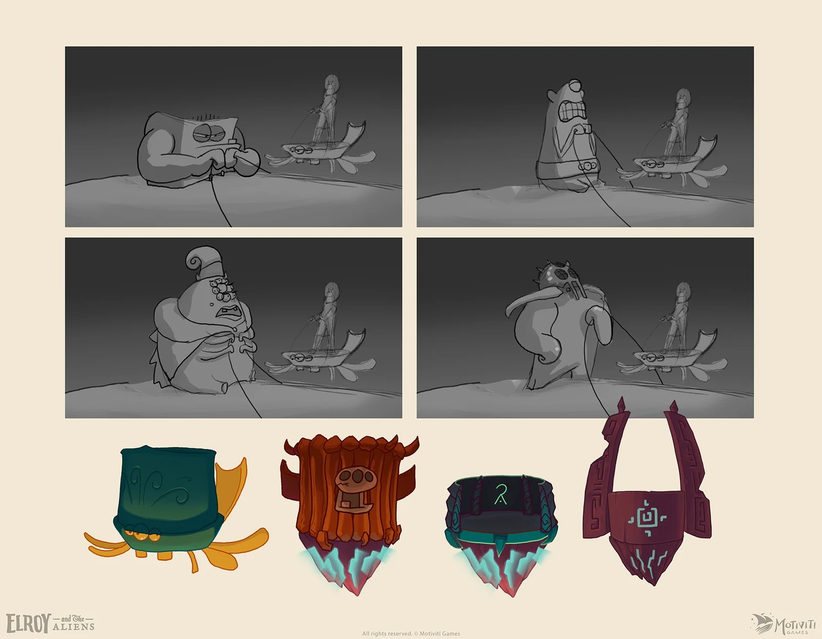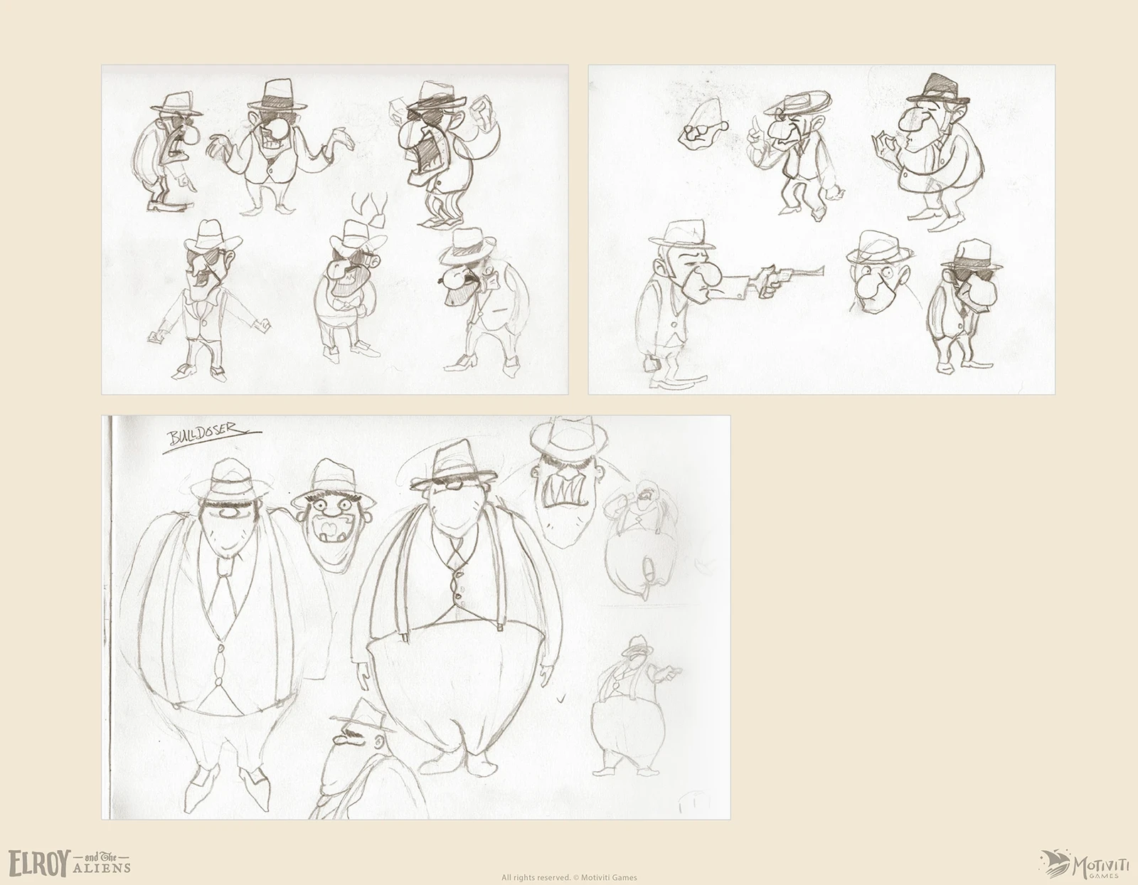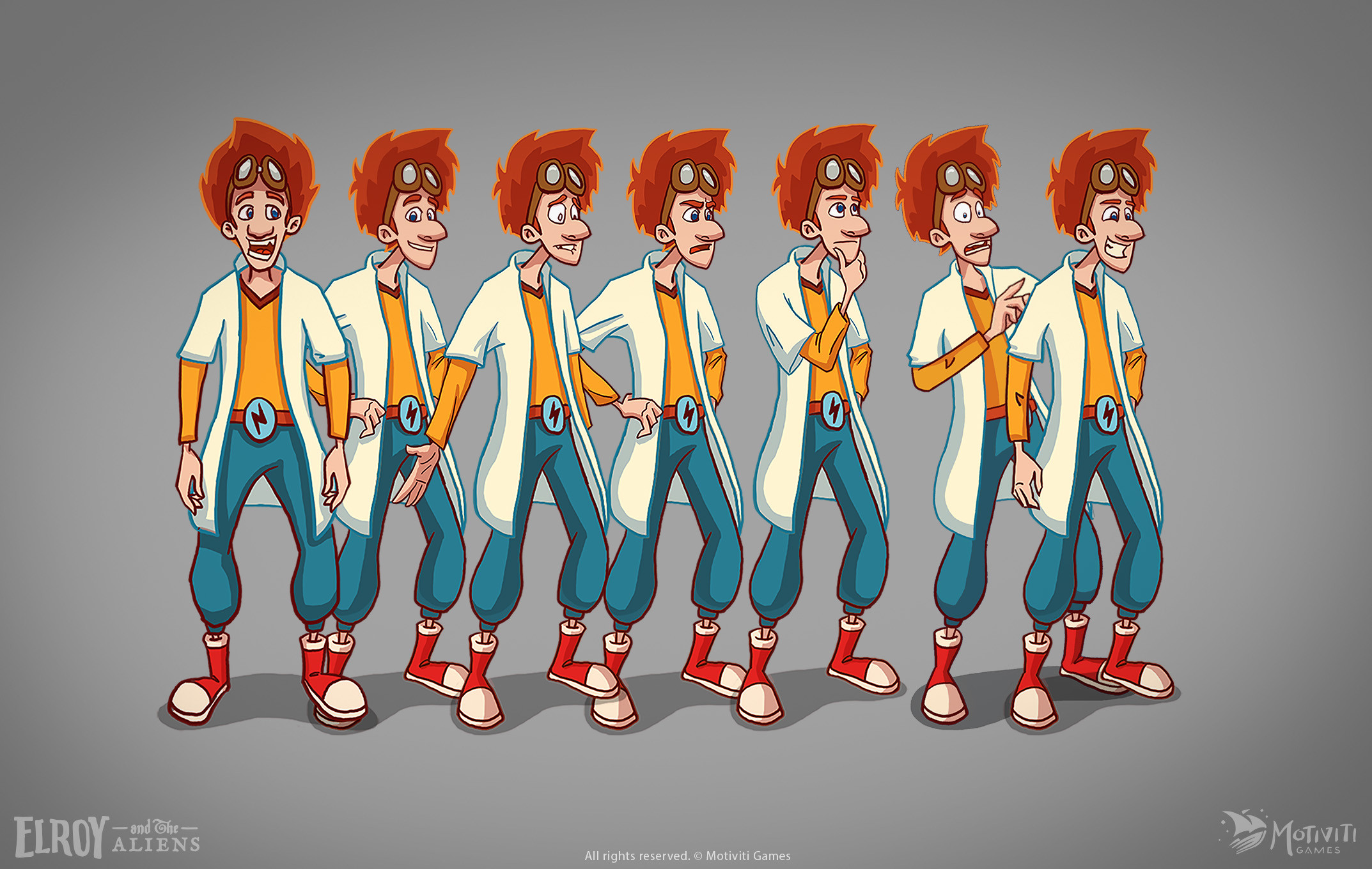 I created the character designs and sketches for the game, developing heroes, antagonists, and the supporting cast to populate the world. Through many design variations and side-by-side explorations, I refined the final look of each character and prepared the heroes with full turnarounds for animation.